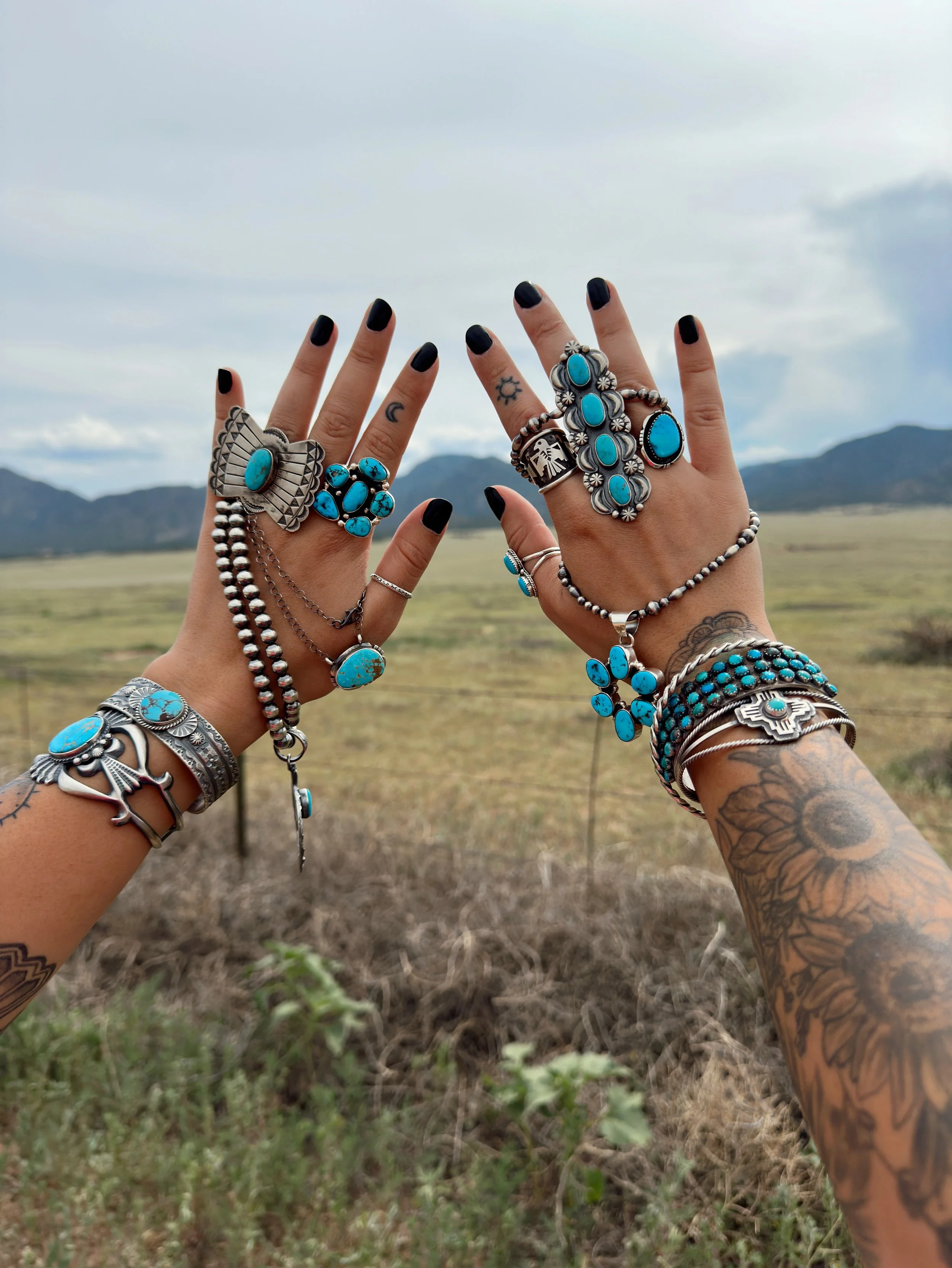 Whether you’re looking for some color to brighten your everyday life or to pass down for generations to come. Each piece reflects skilled craftsmanship, deep cultural meaning, and the spirit of the desert. Explore the variety of pieces available and discover the piece that feels like you. You can never go wrong with adding more turquoise to your collection.
