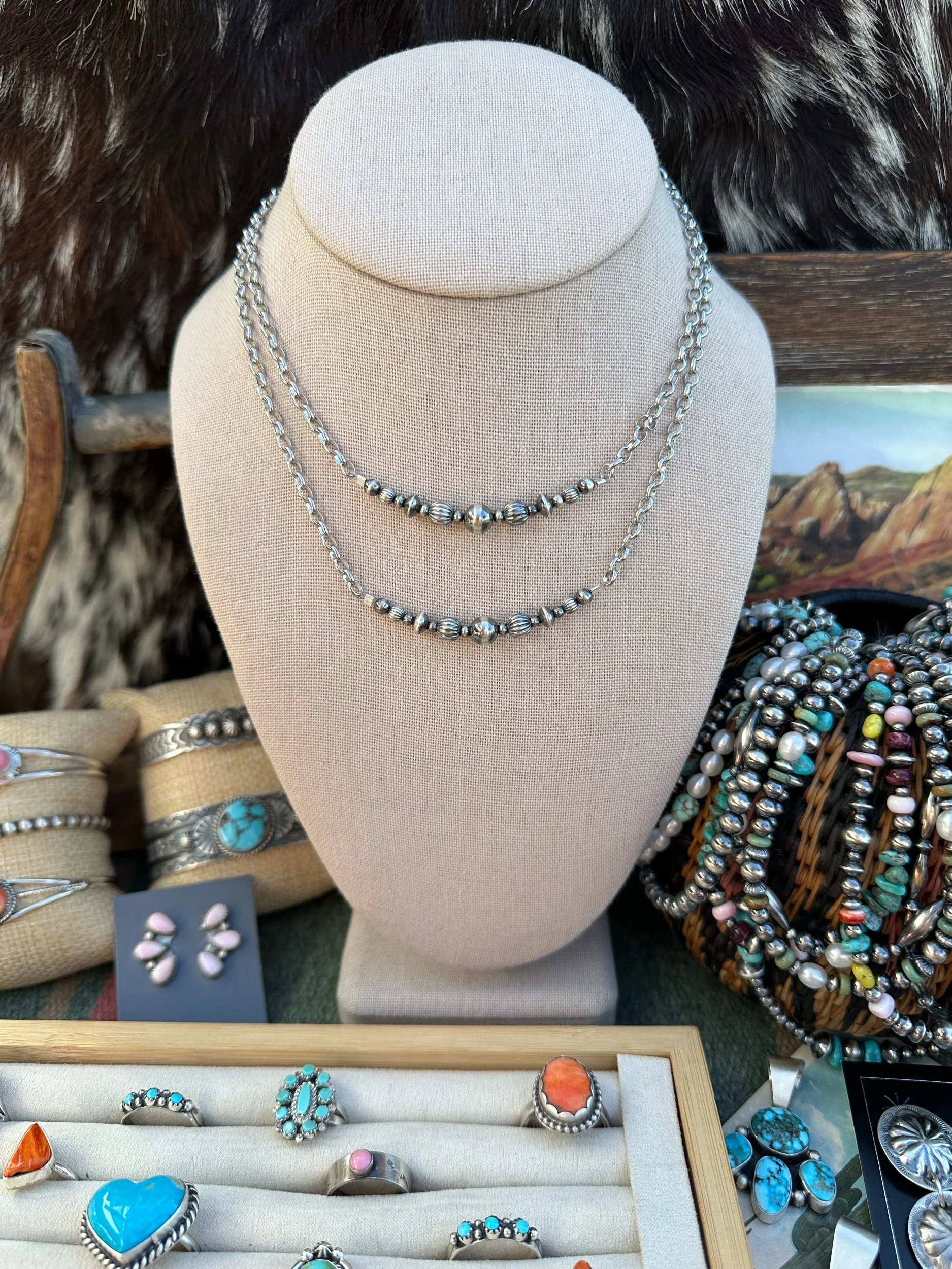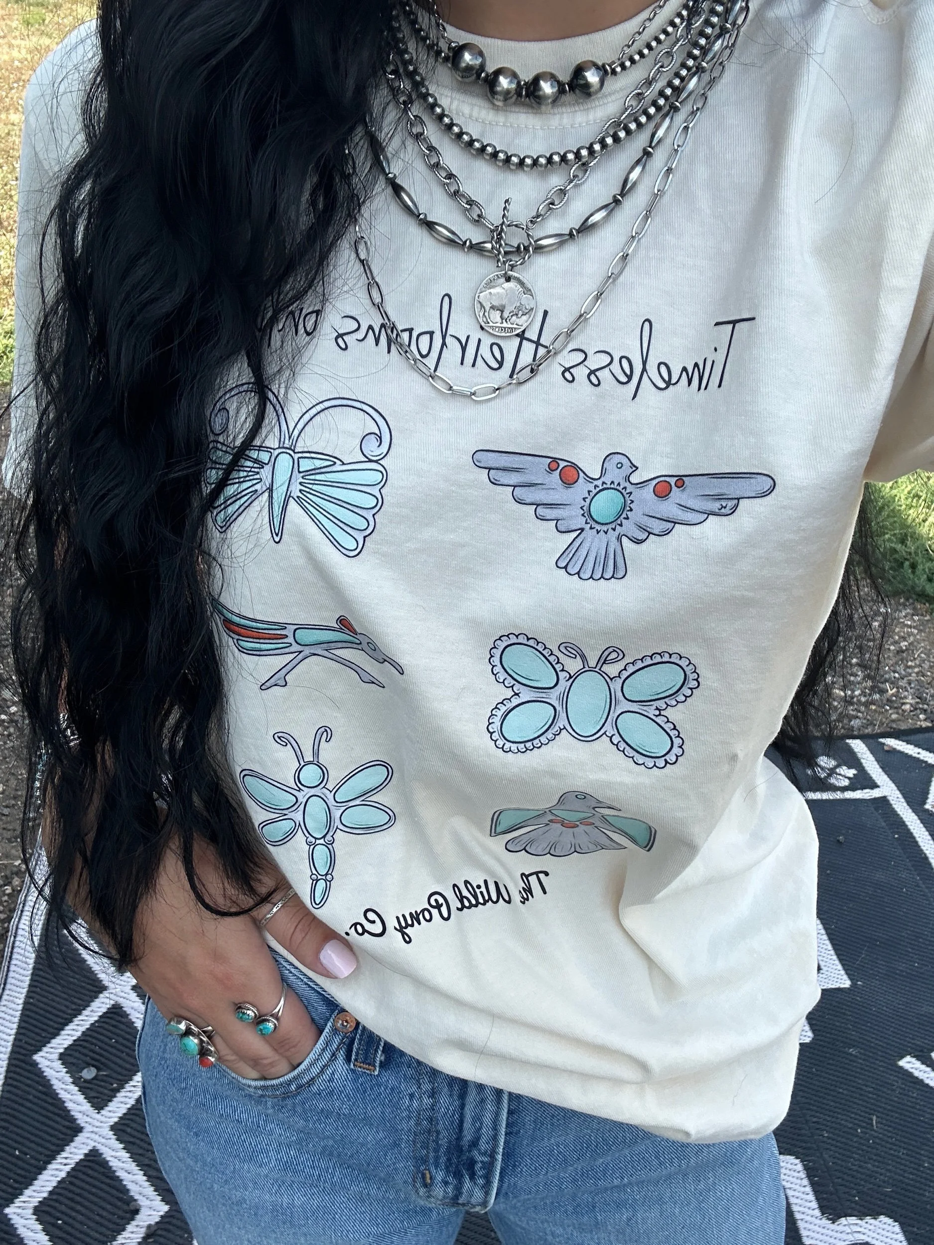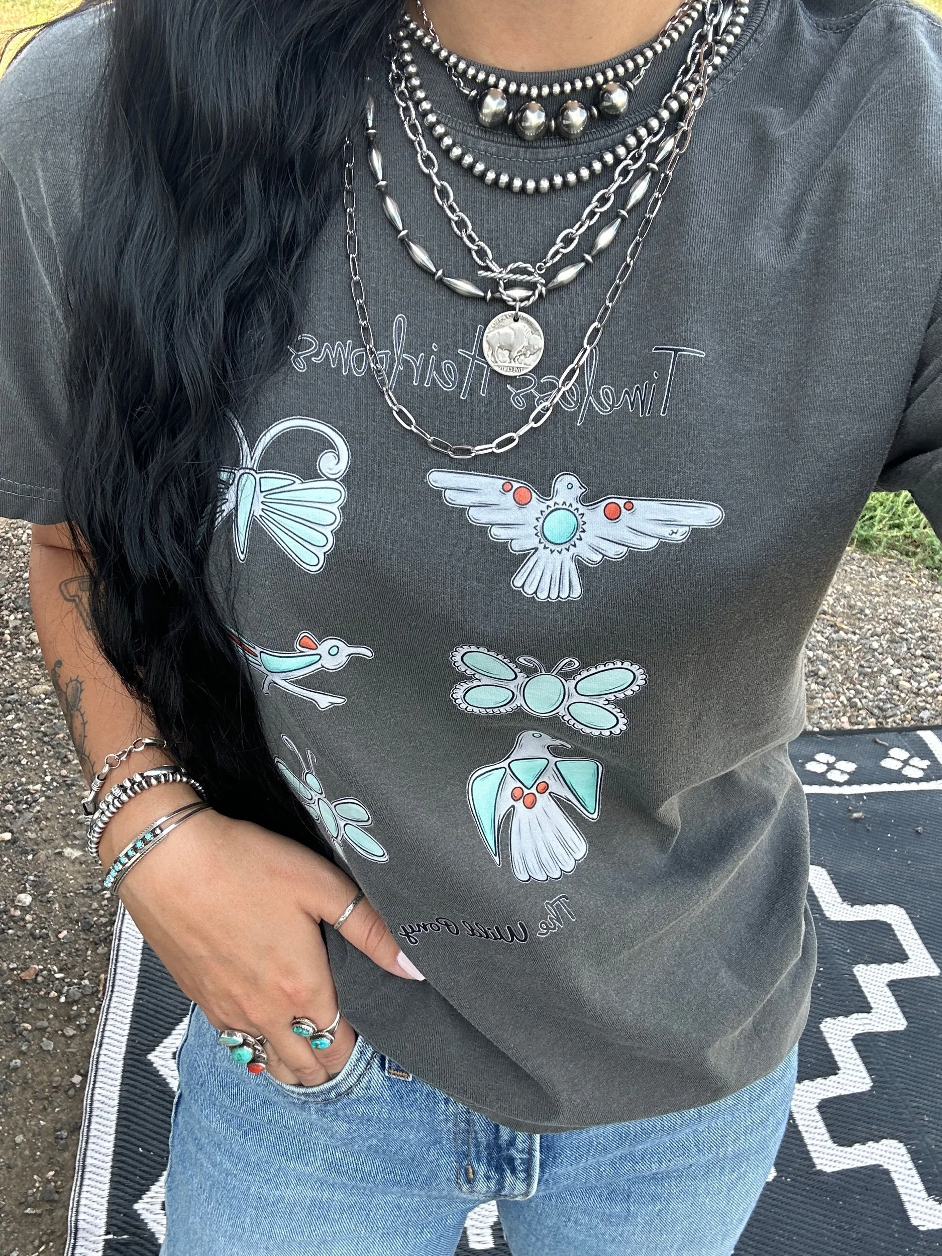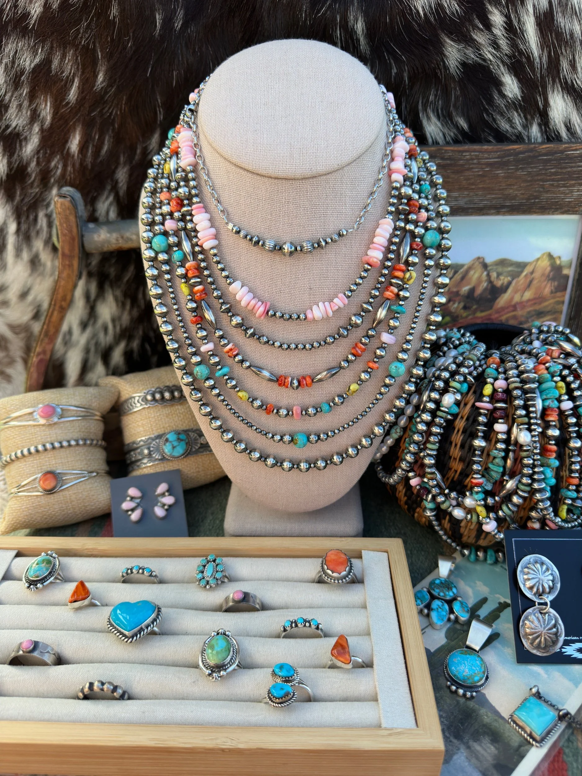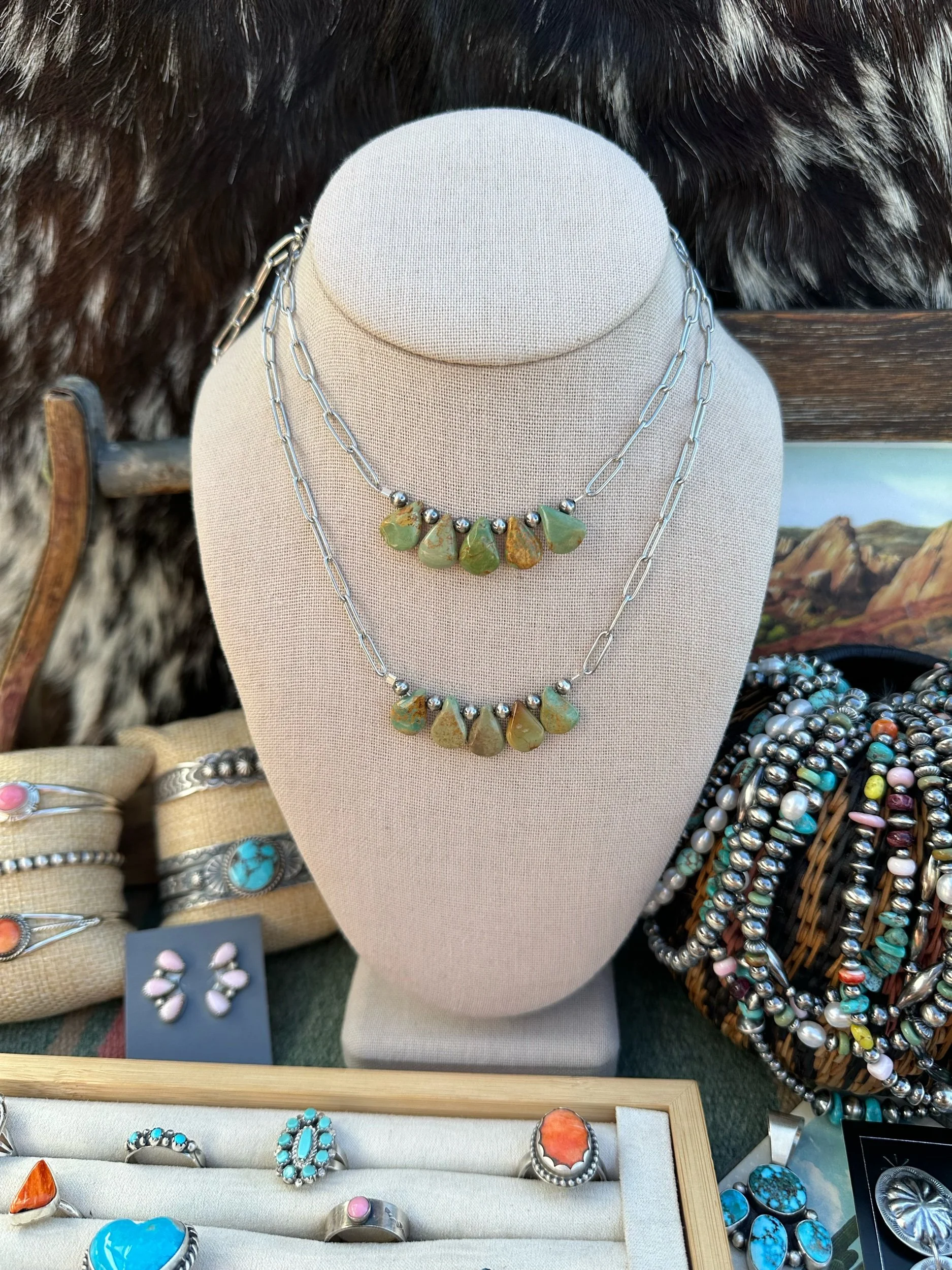 Categories: All Bar Necklaces Chains Buffalo Coin Jewelry Rings Necklaces Bracelets Pendants Earrings Merch All | Bar Necklaces | Chains | Buffalo Coin Jewelry | Rings | Necklaces | Bracelets | Pendants | Earrings | Merch | The Pecos Bracelet $74.00 The Pueblo Bracelet $59.00 The Langley Bracelet $81.00 The Oakley Bracelet $59.00 The Harley Bracelet $59.00 Sold Out The Confetti Bracelet $53.00 Sold Out The Silver City Bracelet $81.00 The Lone Mountain Bracelet $53.00 Sold Out The Cortez Bracelet $61.00 The Dulce Bracelet $85.00 The Cherry Blossom Bracelet $70.00 Sold Out The Green Girly Bracelet $94.00 The Midnight Rider Bracelet $68.00 The Number 8 Bracelet $79.00 Sold Out The Texas Creek Bracelet $59.00 The Wildflower Fields Necklace $135.00 Sold Out The Merida Necklace $191.00 The Cancun Necklace $174.00 The Edgewood Necklace $171.00 Sold Out The Chimayo choker $136.00 Sold Out The Sagebrush Necklace $158.00 The Willow Necklace $128.00 Sold Out The Blair Necklace $154.00 The Freshwater Pearl and Number 8 Turquoise Stacking Necklace $108.00 The Confetti Necklace $141.00 Sold Out The Brimstone Necklace $176.00 The Cholla Necklace $165.00 Sold Out The Gunnison Necklace $202.00 The Rafter Necklace $231.00 Sold Out The Rio Rancho Necklace $154.00 Sold Out The Capitol Reef Necklace $154.00 The Classic 6mm Necklace $160.00 The Sonora Necklace $112.00 The Pueblo Necklace $158.00 Dainty Graduated Sterling Pearl Bar Necklace $48.00 The Turquoise Teardrop Bar Necklace $45.00 The Corrales Ring- Native Made from $206.00 The Freebird Ring- Native Made $94.00 The Buckley Ring- Native Made $50.00 The El Dorado Ring- Native Made Sand Cast Flower $215.00 The Paula Pendant- Native Made $83.00 The Pearls Bestfriend Cuff- Native Made $200.00 The Round Rock Cuff- Native Made Turquoise Cuff $74.00 The Vaquero Pendant- Native Made $239.00 The Bitty Lariat $52.00 The Pawnee Pendant- Native Made Number 8 Turquoise Pendant $279.00 Sold Out The Mini Blossom Pendant- Native Made $40.00 Sold Out The Pony Up Pendants- Native Made $128.00 The Mini Rope Hoops- Native Made $44.00 The Scout Ring- Native Made $101.00 The Yuma Ring- Native Made $50.00 The Square Dancing Necklace- Native Made $135.00 The Saratoga Earrings- Native Made $87.00 The Dome Studs- Sterling Silver $30.00 Sold Out The Box Canyon Necklace- Native Made $348.00 Sold Out The Kingman Slab Necklace- Blue Kingman Turquoise With Matrix $70.00 The Kingman Slab Choker- Green Kingman Turquoise $119.00 The Kingman Slab Choker- Blue Kingman Turquoise With Matrix $176.00 The Pink Opal Lariat $65.00 Sold Out The Marfa Necklace $96.00 The Southwest Charm Necklace $165.00 Sold Out The Turquoise Chain Bracelet $56.00 The High Plains Ring- Native Made Fox Turquoise Statement Ring $347.00 The High Desert Ring- Native Made Royston Turquoise Statement Ring $330.00 The Mesa Sunset Pendant- Native Made Sonoran Gem Turquoise Statement Pendant $635.00 The Ocean Waters Cuff- Native Made Fox Turquoise Cuff $347.00 The Buena Vista Necklace- Native Made Turquoise Statement Necklace $985.00 Sold Out Handmade Navajo Pearl Necklace- Sterling Silver Semi Saucer/Pearl $521.00 The Desert Dancer Bracelet- Kingman Turquoise $385.00 Sold Out The Caprock Earrings- Native Made Kingman Turquoise Statement Earrings $347.00 The Stepping Stone Ring- Native Made Fox Turquoise Statement Ring $382.00 Orange Spiny & Turquoise Bracelet With Sterling Pearls $79.00 The Luna Necklace $103.00 The Spiny Pearl Bar Necklace $62.00 The Loretta Necklace $150.00 The Number 8 Bar Necklace $85.00 The San Antone Bracelet $85.00 The Hudson Bracelet $88.00 The Dainty Palomino Bracelet $66.00 The Dolly Bracelet $45.00 Green Campitos and Torpedo Pearl Bracelet $62.00 The Selena Bracelet $85.00 The Midnight Sky Bracelet $79.00 The Golden Girl Bracelet $81.00 The Flower Power Bracelet $72.00 The Castle Dome Bracelet $132.00 The Aspen Choker $174.00 The Arizona Reds Choker $193.00 The Little Nugget Choker $194.00 The Juanita Necklace $220.00 The Roxie Necklace $150.00 The Leona Necklace $180.00 The Alamosa Necklace $193.00 Sold Out The Lucasey Necklace $158.00 The Rosetta Necklace $160.00 The Posey Necklace $255.00 The Wyonna Necklace $135.00 The Frisco Necklace $115.00 The Candy Store Necklace $145.00 The Florissant Necklace $168.00 The Guffey Necklace $211.00 The Cutie Cowgirl Necklace $152.00 The Sweetheart Ring- Native Made $187.00 The Kingman Half Cluster Studs- Native Made $212.00 Sold Out The Augustine Cuff-Native Made $465.00 The Number 8 Necklace $75.00 The Heart Of The Desert Charm Necklace $62.00 Sold Out The Daisy If You Do Studs- Native Made $300.00 Sold Out The Triangle Turquoise Studs- Native Made $20.00 Sold Out Dainty Everyday Turquoise Studs- Native Made $21.00 Sold Out The Astra Studs- Native Made Dragonfly Studs $68.00 The Perfect Cluster Ring- Native Made $200.00 The Desert Dancer Bracelet- Natice Made $385.00 Dainty Sleeping Beauty Stacking Cuff- Native Made $55.00 Sold Out The Triple Decker Spiny Pendant- Native Made $259.00 The Rayleigh Ring- Native Made Turquoise Butterfly Ring $57.00 The Bisbee Ring- Native Made Turquoise Cluster Ring $110.00 The Conrad Cuff- Native Made Twisted Rope Cuff $134.00 The Pearls Bestfriend Ring- Native Made Beaded Band Stacking Ring $87.00 The Cutie Conch Cuff- Native Made Pink Conch Cuff $202.00 The Kingman Slab Bracelet $62.00 The Original Thunderbird Ring- Native Made Inlay Thunderbird Ring $72.00 The Roswell Ring- Native Made Adjustable Turquoise Stacking Ring $87.00 The Zia Studs- Native Made $115.00 The Eastwood Cuff- Native Made Concho Detail Cuff $286.00 Sold Out The Kingman Petal Chain Necklace- Kingman Turquoise And Sterling Pearls/Saucers $167.00 The Strawberry Lemonade Necklace- Palomino Varscite, Pink Coral, And Sterling Pearls $144.00 The Kingman And Spiny Chip Stacking Bracelet $49.00 Sold Out The Red River Bracelet- White Creek Turquoise, Spiny Oyster, And Sterling Pearls $90.00 The Statement Stirrup Necklace $37.00 The Shania Necklace- Sterling 