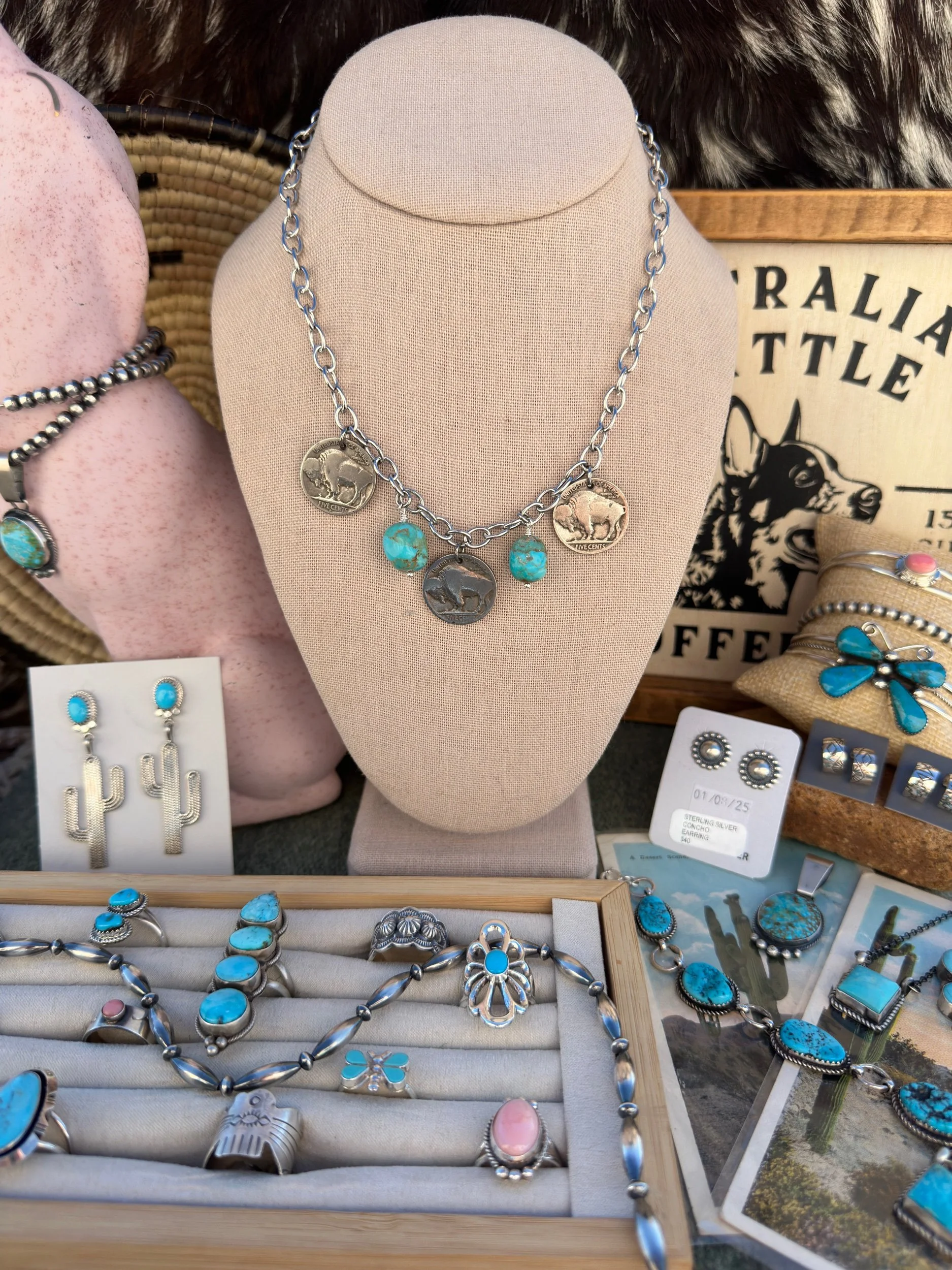 Shop Categories: All Bar Necklaces Chains Buffalo Coin Jewelry Rings Necklaces Bracelets Pendants Earrings Merch All | Bar Necklaces | Chains | Buffalo Coin Jewelry | Rings | Necklaces | Bracelets | Pendants | Earrings | Merch | The Mesa Verde Necklace $160.00 Sold Out The Midland Necklace $246.00 The Desert Willow Necklace $232.00 The Ocotillo Necklace $181.00 The Laredo Necklace $229.00 The Marfa Necklace $140.00 The Peyote Necklace $170.00 The Centennial Necklace $189.00 The Kingman Slab Choker With Freshwater Pearls $145.00 Sold Out The Four Corners Necklace $165.00 The Fresno Necklace $195.00 The Latigo Necklace $185.00 The Chili Pepper Necklace $212.00 The Rosa Necklace $122.00 The Kingman Slab Choker $159.00 The Terlingua Choker $251.00 The Salinas Choker $235.00 The Verde Necklace $151.00 The Clovis Necklace $224.00 The Santa Fe Choker $145.00 The Granby Choker $137.00 The Desert Sage Necklace $169.00 The San Juan Necklace $278.00 The Night Horse Necklace $142.00 Sold Out The Classic 5mm Necklace $148.00 The Desert Dweller Necklace $198.00 Sold Out The Girly Southwest Bar Necklace $49.00 Sold Out The Multistone Southwest Bar Necklace $64.00 Sold Out The Prescott Bar Necklace $66.00 The Dakota Necklace $580.00 Sold Out The Salt River Lariat $376.00 The Wild Horse Bar Necklace $42.00 Sold Out The Number 8 Bar Necklace $98.00 The Taos Lariat $50.00 The Idyllwild Necklace $71.00 The Periwinkle Bracelet $141.00 The Moab Earrings $98.00 The Catalina Bracelet $67.00 The Egyptian Turquoise Chip Bracelet $65.00 The Sawyer Bracelet $52.00 The Brandy Bracelet $122.00 The Yellow Pony Bracelet $81.00 The Blossom Bracelet $64.00 The Ashton Bracelet $99.00 The Teagan Bracelet $66.00 The Boulder Bracelet $84.00 The Rockdale Bracelet $67.00 The Madrid Bracelet $61.00 Sold Out The Rosita Bracelet $51.00 The Wild Horse Bracelet $67.00 Sold Out The 8mm Spiny Bracelet $81.00 The Roja Bracelet $79.00 The Rico Bracelet $71.00 The Flagstaff Bracelet $125.00 The Desert Trail Pendant- Native Made $410.00 The Wild At Heart Studs- Native Made $358.00 The Flower Concho Studs- Native Made $120.00 The Corsicana Ring- Native Made $259.00 The Mini Spiny Pendants- Native Made $62.00 The Adobe Ring- Native Made $108.00 The Sunset Canyon Earrings- Native Made $348.00 The Luna Ring- Native Made $348.00 The Prickly Pear Ring- Native Made $156.00 The Doubled Up Earrings- Buffalo Nickels $30.00 The Disco Bar Necklace $75.00 The Palm Springs Necklace $132.00 Sold Out The Kingman Petal Bar Necklace $84.00 Sold Out The Dome Studs- Small $25.00 The Colter Chain- Small Links- Native Made $215.00 The Monarch Pendant- Native Made $432.00 The Calhan Bracelet- Native Made $480.00 The La Plata Earrings- Native Made $130.00 The Thunder Creek Studs- Native Made $192.00 The Mariposa Cuff- Native Made $310.00 The Kingman Naja- Native Made $189.00 The Lamesa Pendant-Native Made Orange Spiny Mini Blossom $150.00 The Desert Cowgirl Ring- Native Made $178.00 The Rowen Hoops- Native Made $58.00 Sold Out The Yucca Ring- Native Made Pink Conch Ring $92.00 The Pecos Bracelet $74.00 The Oakley Bracelet $59.00 Sold Out The Confetti Bracelet $53.00 Sold Out The Silver City Bracelet $81.00 The Cortez Bracelet $61.00 The Midnight Rider Bracelet $68.00 The Wildflower Fields Necklace $189.00 The Merida Necklace $191.00 The Cancun Necklace $174.00 The Blair Necklace $154.00 Sold Out The Confetti Necklace $156.00 The Brimstone Necklace $176.00 Sold Out The Cholla Necklace $174.00 The Gunnison Necklace $202.00 The Rafter Necklace $248.00 The Classic 6mm Necklace $173.00 Sold Out The Pueblo Necklace $170.00 The Turquoise Teardrop Bar Necklace $45.00 Sold Out The Corrales Ring- Native Made from $206.00 The Freebird Ring- Native Made $94.00 The El Dorado Ring- Native Made Sand Cast Flower $215.00 The Paula Pendant- Native Made $83.00 The Pearls Bestfriend Cuff- Native Made $200.00 The Round Rock Cuff- Native Made Turquoise Cuff $74.00 Sold Out The Vaquero Pendant- Native Made $239.00 The Bitty Lariat $52.00 Sold Out The Mini Blossom Pendant- Native Made $40.00 Sold Out The Pony Up Pendants- Native Made $128.00 The Mini Rope Hoops- Native Made $44.00 The Scout Ring- Native Made $101.00 The Square Dancing Necklace- Native Made $135.00 The Saratoga Earrings- Native Made $87.00 Sold Out The Kingman Slab Choker- Green Kingman Turquoise $119.00 The Marfa Necklace $96.00 The Turquoise Chain Bracelet $56.00 The High Desert Ring- Native Made Royston Turquoise Statement Ring $330.00 The Mesa Sunset Pendant- Native Made Sonoran Gem Turquoise Statement Pendant $635.00 Sold Out The Ocean Waters Cuff- Native Made Fox Turquoise Cuff $347.00 Sold Out Handmade Navajo Pearl Necklace- Sterling Silver Semi Saucer/Pearl $521.00 Sold Out The Caprock Earrings- Native Made Kingman Turquoise Statement Earrings $347.00 The Stepping Stone Ring- Native Made Fox Turquoise Statement Ring $382.00 Orange Spiny & Turquoise Bracelet With Sterling Pearls $79.00 The Luna Necklace $103.00 The Spiny Pearl Bar Necklace $62.00 The Loretta Necklace $150.00 The San Antone Bracelet $85.00 The Hudson Bracelet $88.00 The Dainty Palomino Bracelet $66.00 The Dolly Bracelet $45.00 Sold Out Green Campitos and Torpedo Pearl Bracelet $62.00 The Selena Bracelet $85.00 The Golden Girl Bracelet $81.00 The Castle Dome Bracelet $132.00 The Aspen Choker $174.00 The Arizona Reds Choker $193.00 The Little Nugget Choker $194.00 The Juanita Necklace $220.00 The Roxie Necklace $150.00 The Leona Necklace $180.00 The Lucasey Necklace $158.00 The Posey Necklace $255.00 The Wyonna Necklace $135.00 The Frisco Necklace $115.00 The Florissant Necklace $168.00 The Sweetheart Ring- Native Made $187.00 The Augustine Cuff-Native Made $465.00 The Number 8 Necklace $75.00 The Heart Of The Desert Charm Necklace $61.00 Sold Out The Astra Studs- Native Made Dragonfly Studs $68.00 The Perfect Cluster Ring- Native Made $200.00 The Triple Decker Spiny Pendant- Native Made $259.00 The Rayleigh Ring- Native Made Turquoise Butterfly Ri