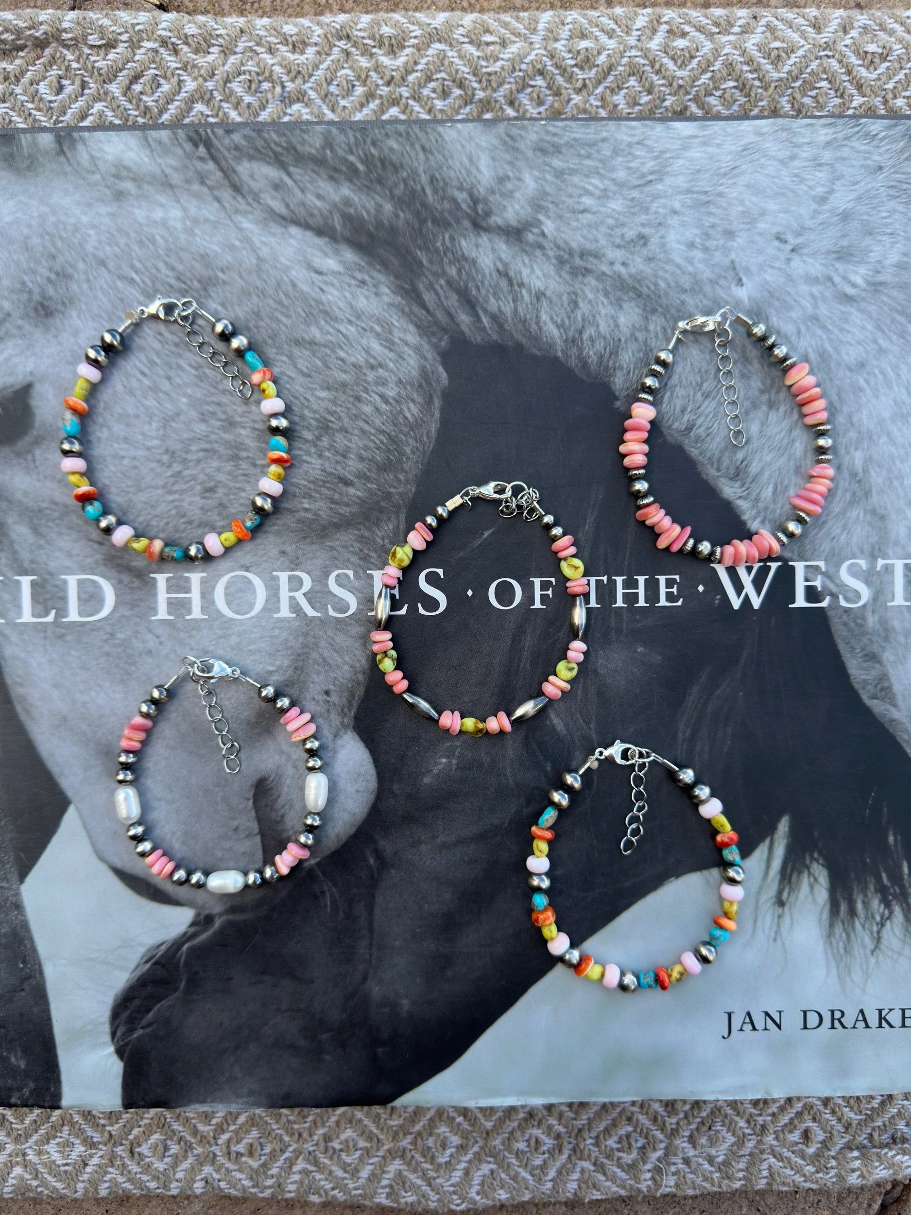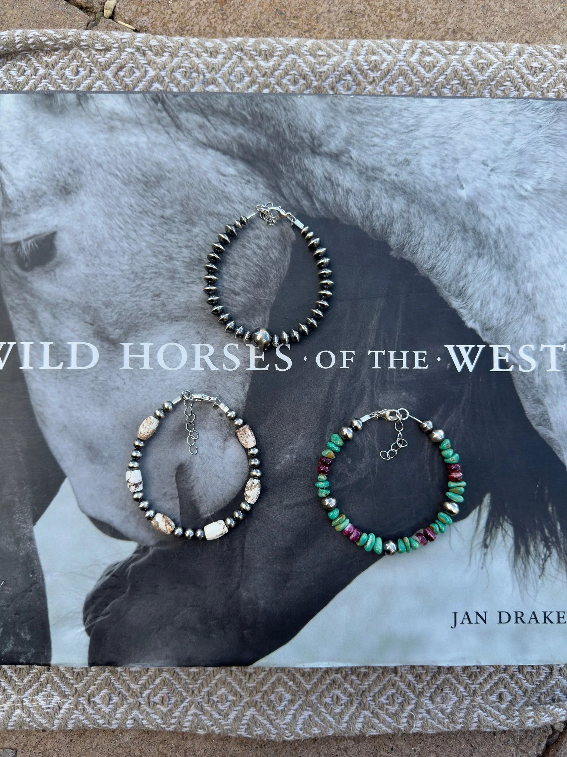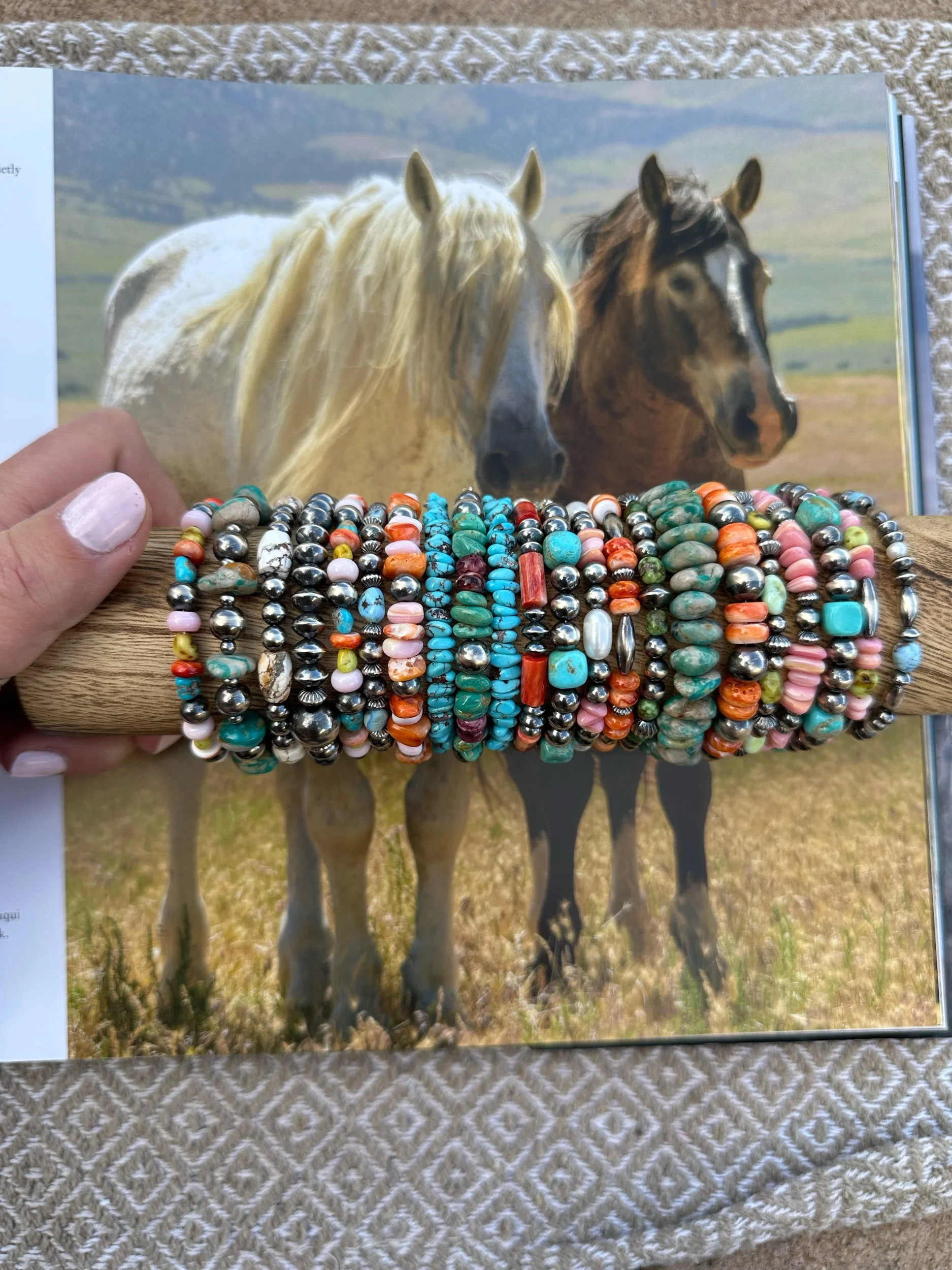 Bracelets Categories: All Bar Necklaces Chains Buffalo Coin Jewelry Rings Necklaces Bracelets Pendants Earrings Merch All / The Periwinkle Bracelet $141.00 The Catalina Bracelet $67.00 The Egyptian Turquoise Chip Bracelet $65.00 The Brandy Bracelet $122.00 The Yellow Pony Bracelet $81.00 The Blossom Bracelet $64.00 The Ashton Bracelet $99.00 The Teagan Bracelet $66.00 The Boulder Bracelet $84.00 The Rockdale Bracelet $67.00 The Madrid Bracelet $61.00 Sold Out The Rosita Bracelet $51.00 The Wild Horse Bracelet $67.00 Sold Out The 8mm Spiny Bracelet $81.00 The Roja Bracelet $79.00 The Rico Bracelet $71.00 The Flagstaff Bracelet $125.00 The Calhan Bracelet- Native Made $480.00 The Mariposa Cuff- Native Made $310.00 The Pecos Bracelet $74.00 The Oakley Bracelet $59.00 Sold Out The Confetti Bracelet $53.00 Sold Out The Silver City Bracelet $81.00 The Cortez Bracelet $61.00 The Midnight Rider Bracelet $68.00 The Pearls Bestfriend Cuff- Native Made $200.00 The Round Rock Cuff- Native Made Turquoise Cuff $74.00 Sold Out The Turquoise Chain Bracelet $56.00 The Ocean Waters Cuff- Native Made Fox Turquoise Cuff $347.00 Sold Out Orange Spiny & Turquoise Bracelet With Sterling Pearls $79.00 The San Antone Bracelet $85.00 The Hudson Bracelet $88.00 The Dainty Palomino Bracelet $66.00 The Dolly Bracelet $45.00 Sold Out Green Campitos and Torpedo Pearl Bracelet $62.00 The Selena Bracelet $85.00 The Golden Girl Bracelet $81.00 The Castle Dome Bracelet $132.00 The Augustine Cuff-Native Made $465.00 The Conrad Cuff- Native Made Twisted Rope Cuff $134.00 The Cutie Conch Cuff- Native Made Pink Conch Cuff $202.00 The Kingman Slab Bracelet $62.00 The Eastwood Cuff- Native Made Concho Detail Cuff $286.00 Sold Out The Spiny Row Cuff- Native Made Orange Spiny Oyster Cuff $215.00 The Tillie Cuff- Native Made Kingman Turquoise Statement Cuff $726.00 The Billah Cuff- Native Made Prince Turquoise Cuff $376.00 The Baja Bracelet- Native Made Detailed Cuff With Turquoise $334.00 The Round Rock Cuff- Native Made Orange Spiny Oyster Cuff $74.00 The White Buffalo Bracelet- White Buffalo And Sterling Pearls $96.00 The Summer Feels Bracelet- Pink Coral, Natural Turquoise, And Sterling Pearls $55.00 The Mojave Cuff- Native Made Turquoise Cuff Bracelet $222.00 In The Wind Cuff- Native Made Feather Detail Turquoise Cuff Bracelet $107.00 Stainless Steel Chain Bracelet- Stacking Bracelet $20.00 The Quebec Cuff- Native Made Stamped Sterling Silver And Kingman Turquoise Cuff $199.00 Walk The Line Cuff- Native Made Sterling Silver And Kingman Turquoise Cuff $179.00 The Sonoran Bracelet- Sonoran Gold Turquoise And Sterling Silver Pearls $82.00 The Waverly Cuff- Native Made Sand Cast Cuff $405.00 The Naja Cuff- Native Made Turquoise Naja Cuff Bracelet $223.00 The Waverly Cuff- Native Made Sand Cast Cuff $405.00