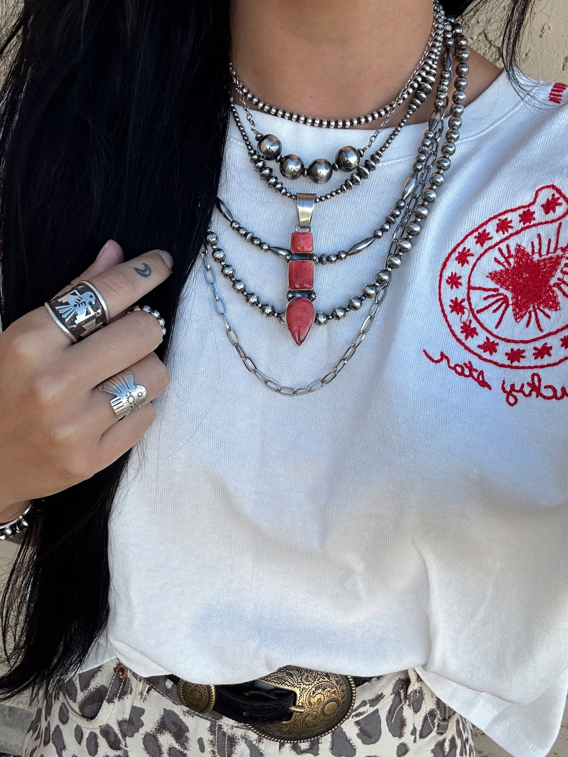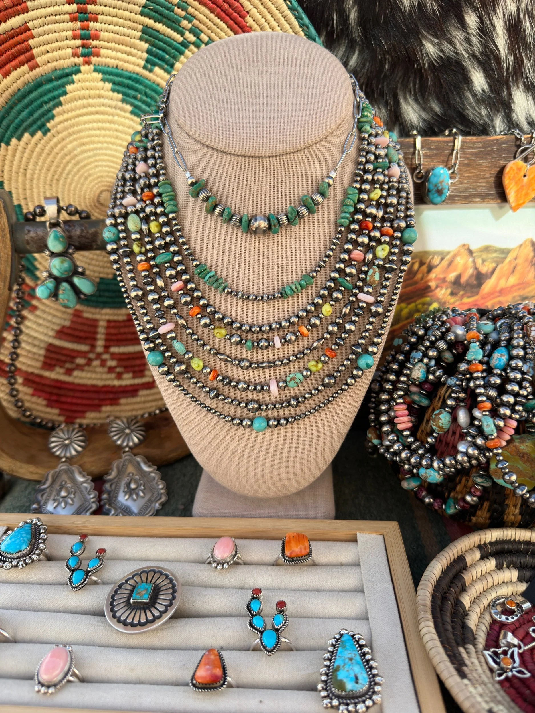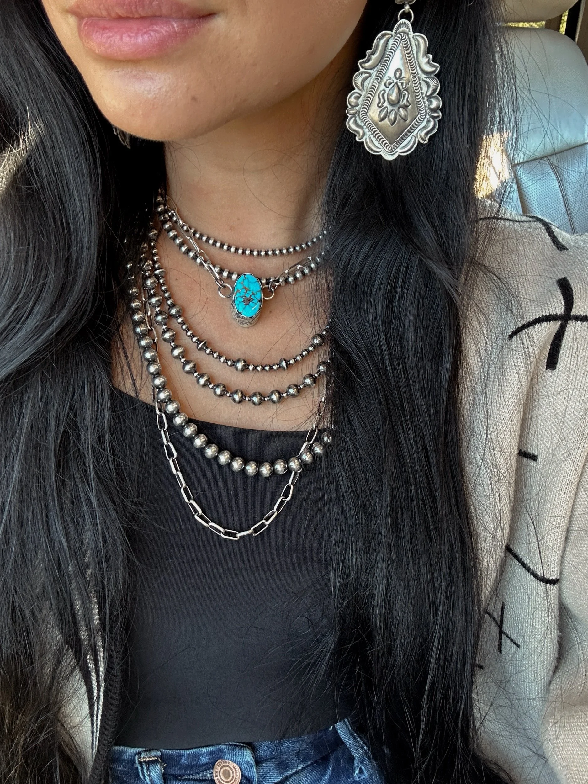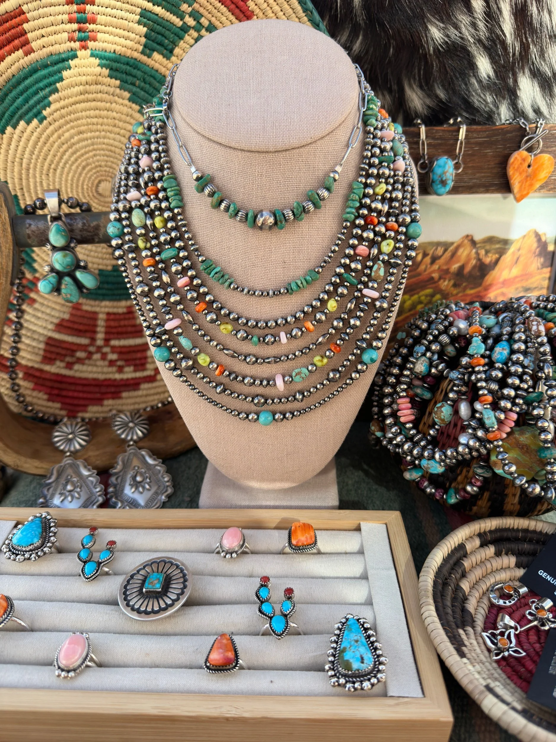 Necklaces Categories: All Bar Necklaces Chains Buffalo Coin Jewelry Rings Necklaces Bracelets Pendants Earrings Merch All / The Mesa Verde Necklace $160.00 Sold Out The Midland Necklace $246.00 The Desert Willow Necklace $232.00 The Ocotillo Necklace $181.00 The Laredo Necklace $229.00 The Marfa Necklace $140.00 The Peyote Necklace $170.00 The Centennial Necklace $189.00 The Kingman Slab Choker With Freshwater Pearls $145.00 Sold Out The Four Corners Necklace $165.00 The Fresno Necklace $195.00 The Latigo Necklace $185.00 The Chili Pepper Necklace $212.00 The Rosa Necklace $122.00 The Kingman Slab Choker $159.00 The Terlingua Choker $251.00 The Salinas Choker $235.00 The Verde Necklace $151.00 The Clovis Necklace $224.00 The Santa Fe Choker $145.00 The Granby Choker $137.00 The Desert Sage Necklace $169.00 The San Juan Necklace $278.00 The Night Horse Necklace $142.00 Sold Out The Classic 5mm Necklace $148.00 The Desert Dweller Necklace $198.00 Sold Out The Dakota Necklace $580.00 Sold Out The Salt River Lariat $376.00 The Taos Lariat $50.00 The Idyllwild Necklace $71.00 The Palm Springs Necklace $132.00 Sold Out The Colter Chain- Small Links- Native Made $215.00 The Wildflower Fields Necklace $189.00 The Merida Necklace $191.00 The Cancun Necklace $174.00 The Blair Necklace $154.00 Sold Out The Confetti Necklace $156.00 The Brimstone Necklace $176.00 Sold Out The Cholla Necklace $174.00 The Gunnison Necklace $202.00 The Rafter Necklace $248.00 The Classic 6mm Necklace $173.00 Sold Out The Pueblo Necklace $170.00 The Bitty Lariat $52.00 Sold Out The Square Dancing Necklace- Native Made $135.00 The Kingman Slab Choker- Green Kingman Turquoise $119.00 The Marfa Necklace $96.00 Handmade Navajo Pearl Necklace- Sterling Silver Semi Saucer/Pearl $521.00 Sold Out The Luna Necklace $103.00 The Loretta Necklace $150.00 The Aspen Choker $174.00 The Arizona Reds Choker $193.00 The Little Nugget Choker $194.00 The Juanita Necklace $220.00 The Roxie Necklace $150.00 The Leona Necklace $180.00 The Lucasey Necklace $158.00 The Posey Necklace $255.00 The Frisco Necklace $115.00 The Florissant Necklace $168.00 The Number 8 Necklace $75.00 The Kingman Petal Chain Necklace- Kingman Turquoise And Sterling Pearls/Saucers $167.00 The Strawberry Lemonade Necklace- Palomino Varscite, Pink Coral, And Sterling Pearls $144.00 The Statement Stirrup Necklace $37.00 The Shania Necklace- Sterling Pearls And Natural Turquoise Charm Necklace $107.00 The Arizona Dreams Necklace- Sterling Pearls, Mini Squash Blossoms, And Natural Turquoise $243.00 The Penrose Necklace- Campitos Turquoise And Sterling Pearls $131.00 The Southwest Gypsy Necklace- Freshwater Pearls And Polychrome Kingman Turquoise $148.00 The Stagecoach Chain- Green Campitos Turquoise And Sterling Pearls $101.00 The Sidewinder Necklace $226.00 Kingman Turquoise Toggle Pendant Necklace $91.00 The Kentucky Derby Lariat- Snaffle Bit Lariat Necklace $80.00 Sold Out The Rodeo Drive Necklace- Chunky Horse Coin Necklace $58.00 Sold Out The Bitty Necklace- Stainless Steel Snaffle Bit Necklace $47.00 Sold Out Dainty Buffalo Coin Pendant Necklace $27.00 The Ransom Necklace- Spiny Oyster Statement Necklace $149.00 The Woodrow Necklace- Campitos Turquoise And Sterling Silver Pearls/Torpedos $256.00 The Timeless Squash Blossom Necklace And Earring Set- Native Made $1,350.00 Kingman Slab Choker $82.00 The Weekender Necklace- Sterling Pearls, Torpedo, Natural Jade And Turquoise Necklace $176.00 The Presley Necklace- Sonoran Turquoise And Natural Shell Heishi Necklace $132.00